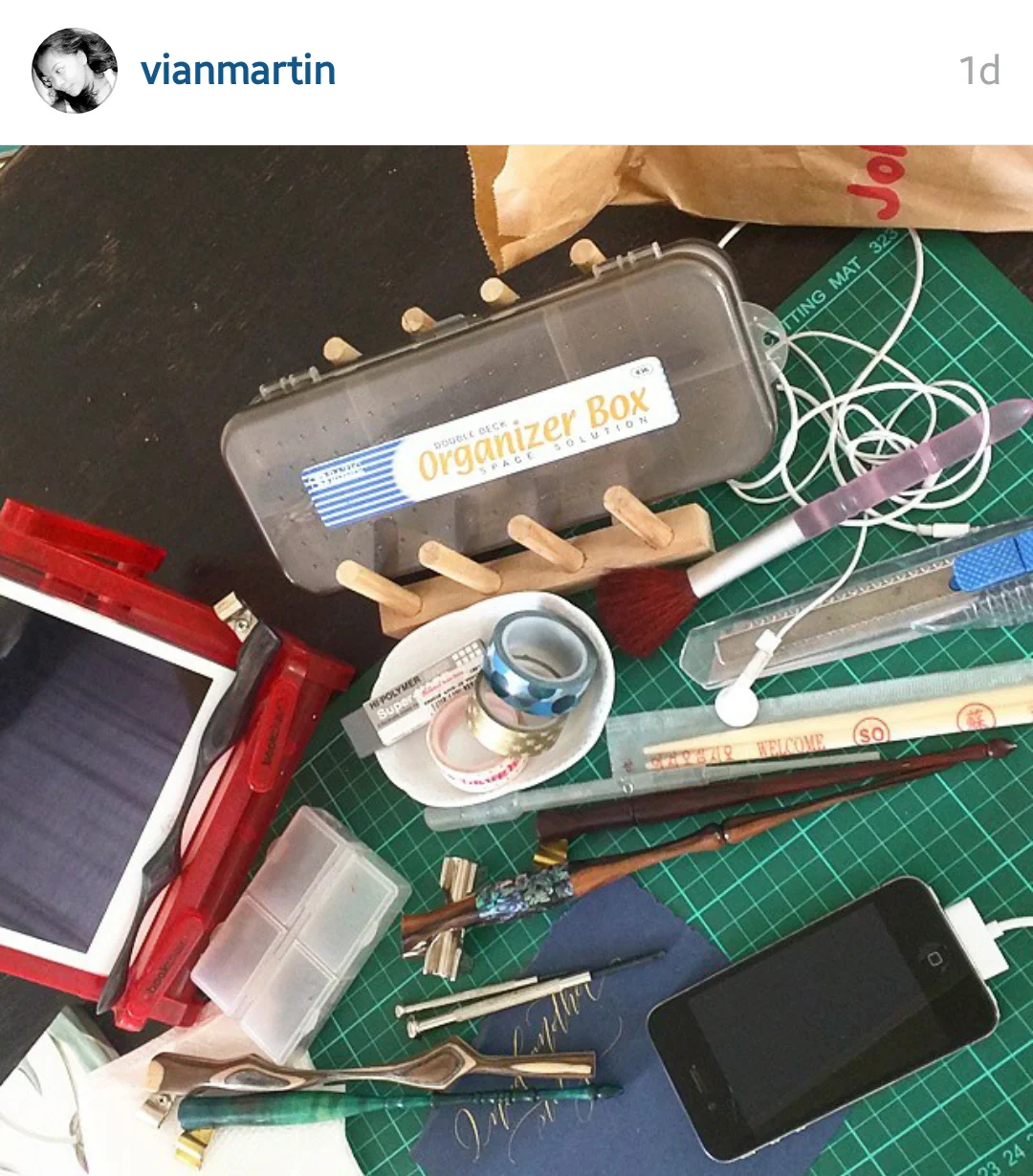 A little while ago there was an Instagram tagging game going on to show us your non-calligraphy items you use for your calligraphy work. I loved the idea behind it, it's insightful, informative and inspiring. It showcases creativity and thinking outside the box, it's also a tool for others to utilize some of their everyday items to up their calligraphy game and workflow!