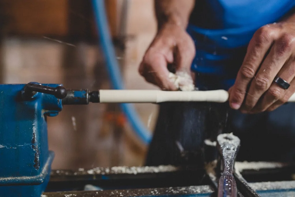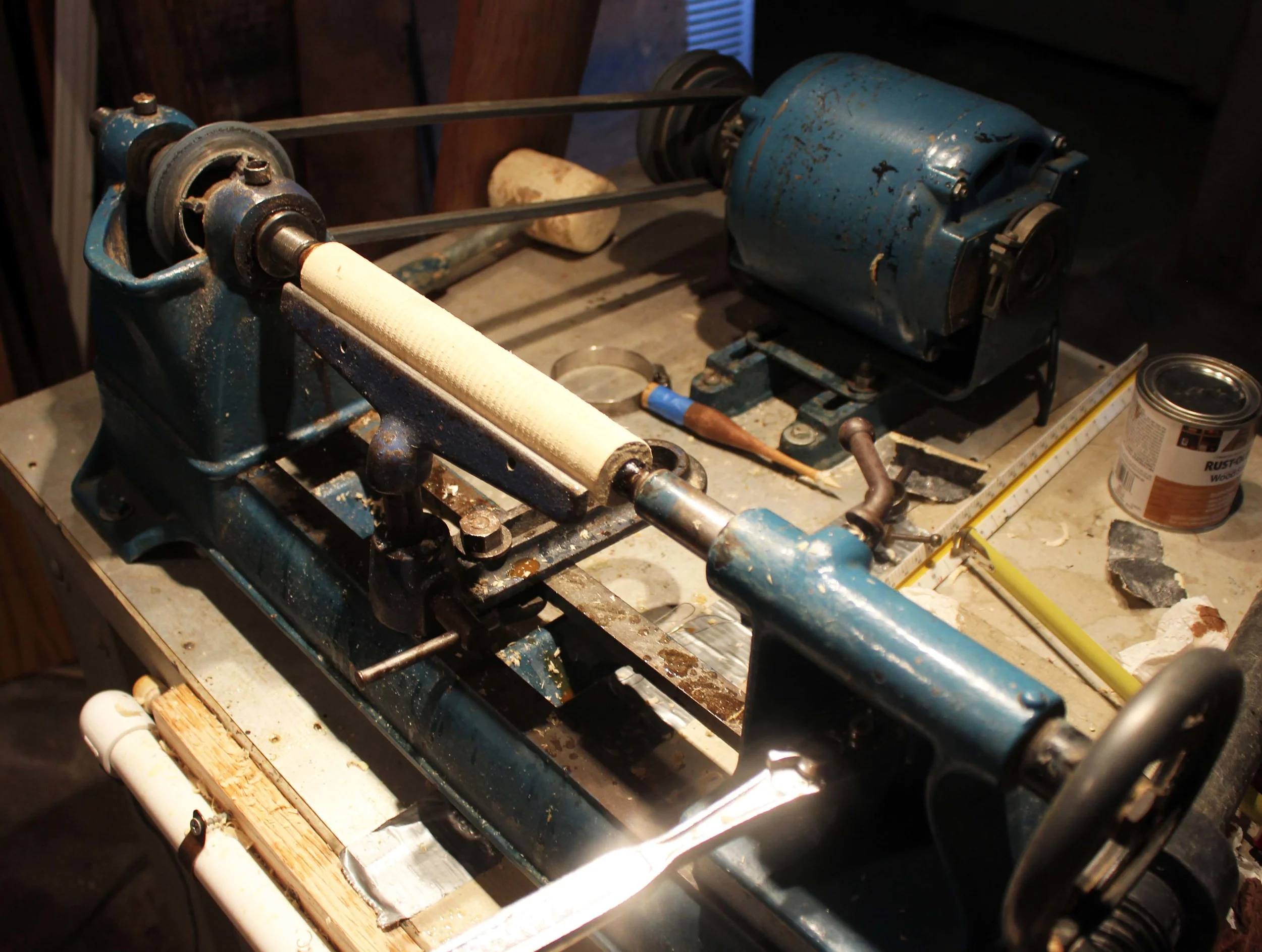 Belt lathe! Quality tools that last, I love it! So we typically use pine for all our hand-painted holders because it's the lightest and it works the best with watercolor and other paints. It's a very soft wood, which can make it more difficult to turn, but Zach has got it on lockdown!