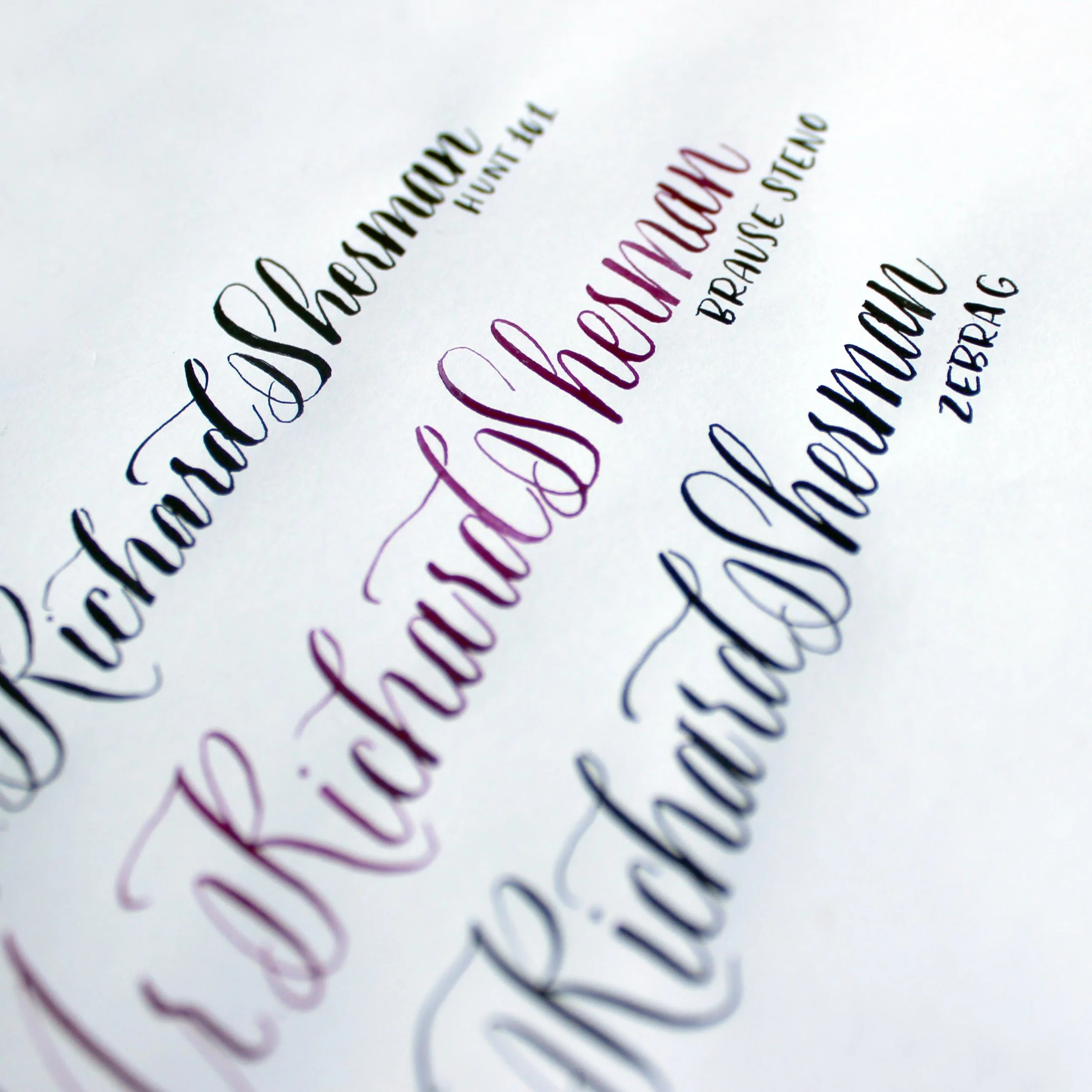 The Zebra G is a work-horse nib. It's good all around. Works well when writing small and large. It's great for beginners because it's pretty stiff, so it can handle the heavy hand. They also have an ink-cage version of this nib - less dipping!
