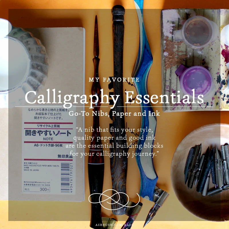 There is a steep learning curve when it comes to calligraphy, and everything effects each other! It can be so frustrating, and at least for me, it takes a couple years to really feel like you have a solid foundation established. I'm totally still building my foundation but these are some things I've learned along the way! A nib that fits your style, quality paper and good ink are the essential building blocks for your calligraphy journey! This post contains affiliate links.